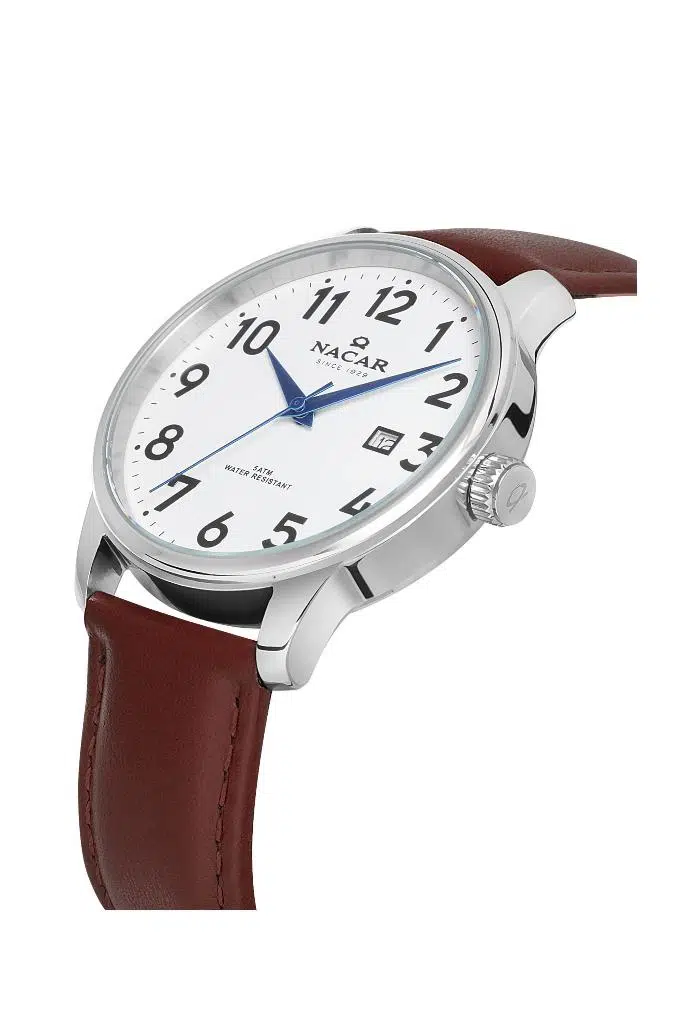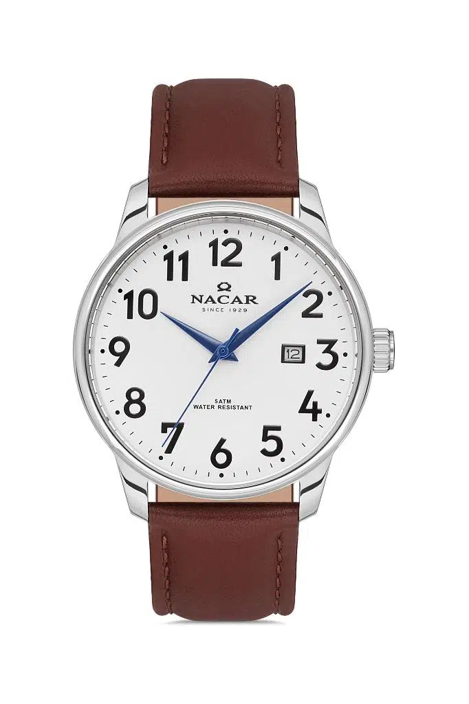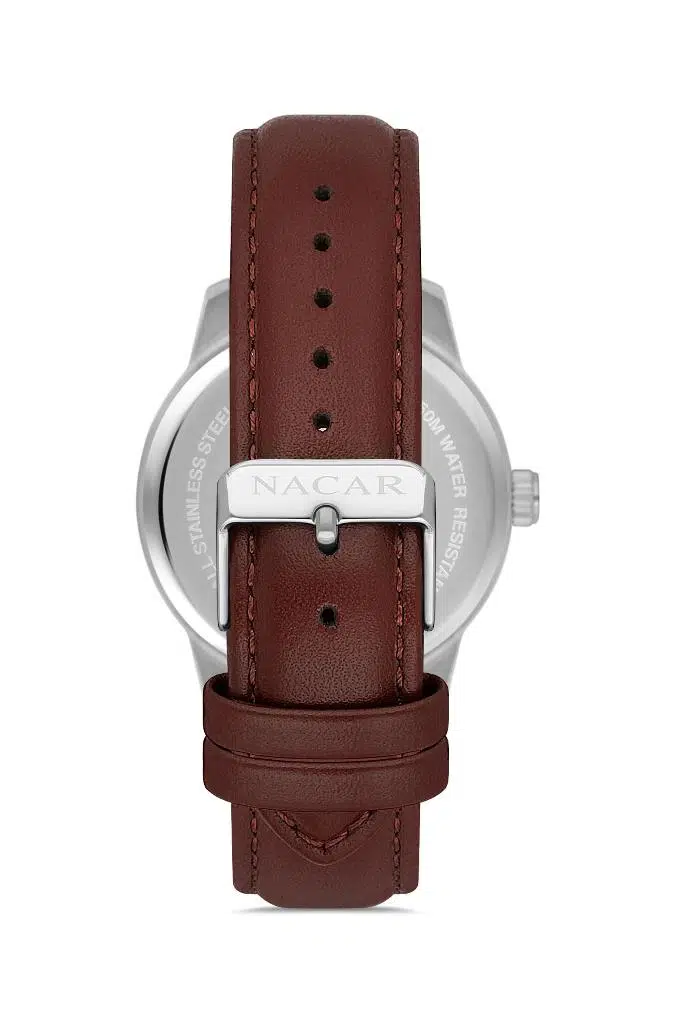 Nacar NC21-297170-AWL2 Kristal Cam Deri Kordon Kahverengi Erkek Kol Saati