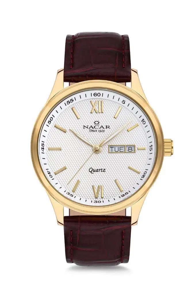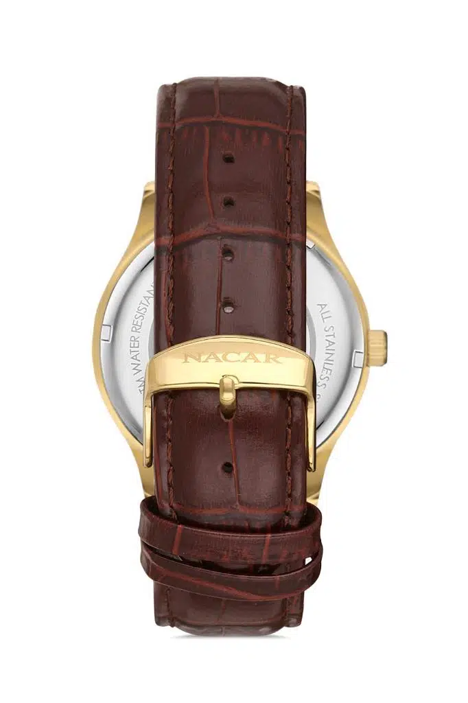 Nacar NC31-29B155-DSL2 Kristal Camlı Deri Kordonlu Kahverengi Erkek Kol Saati