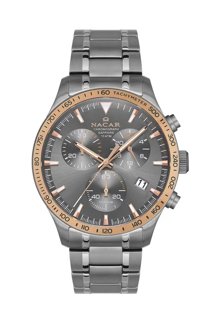 Nacar NC34-25B019-TGRM Chronograph Titanyum Kasa 10 Atm Suya Dayanıklı Füme Renk Erkek Kol Saati4