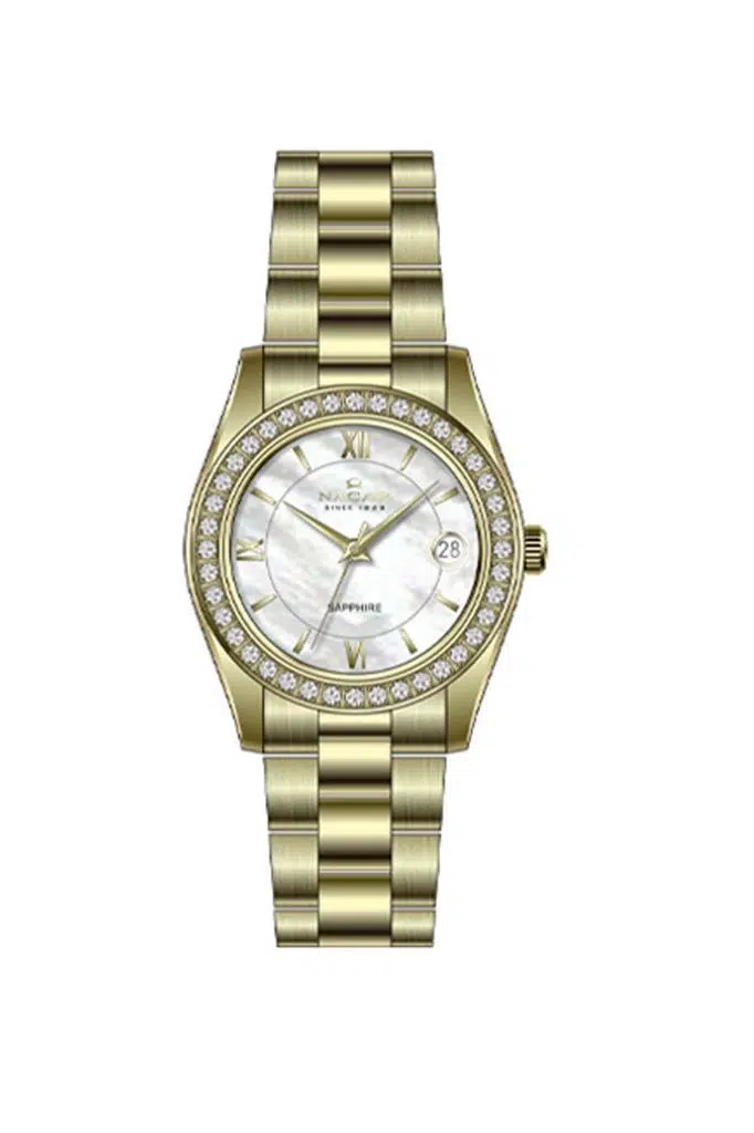 Nacar NC34-39A427-DWMS Çelik Kordon Taşlı Tasarım 5 ATM Suya Dayanıklı Altın Renk Kadın Kol Saati