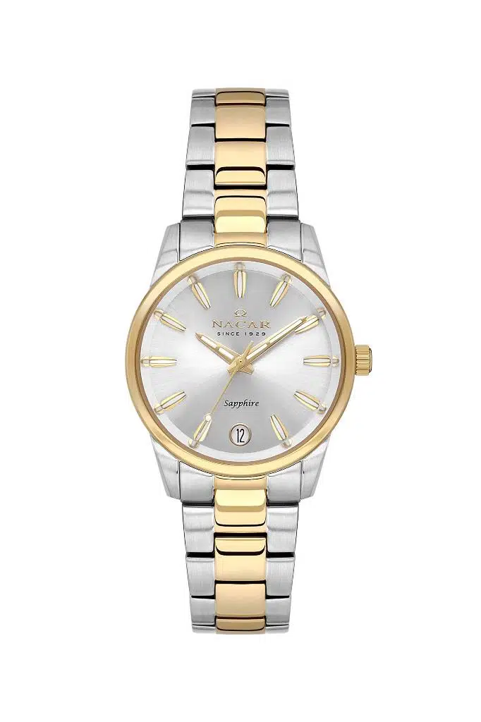 Nacar NC34-39B639-CSM Kadın Safir Çizilmez Cam Taşlı Tasarım Metalik-Altın Kol Saati