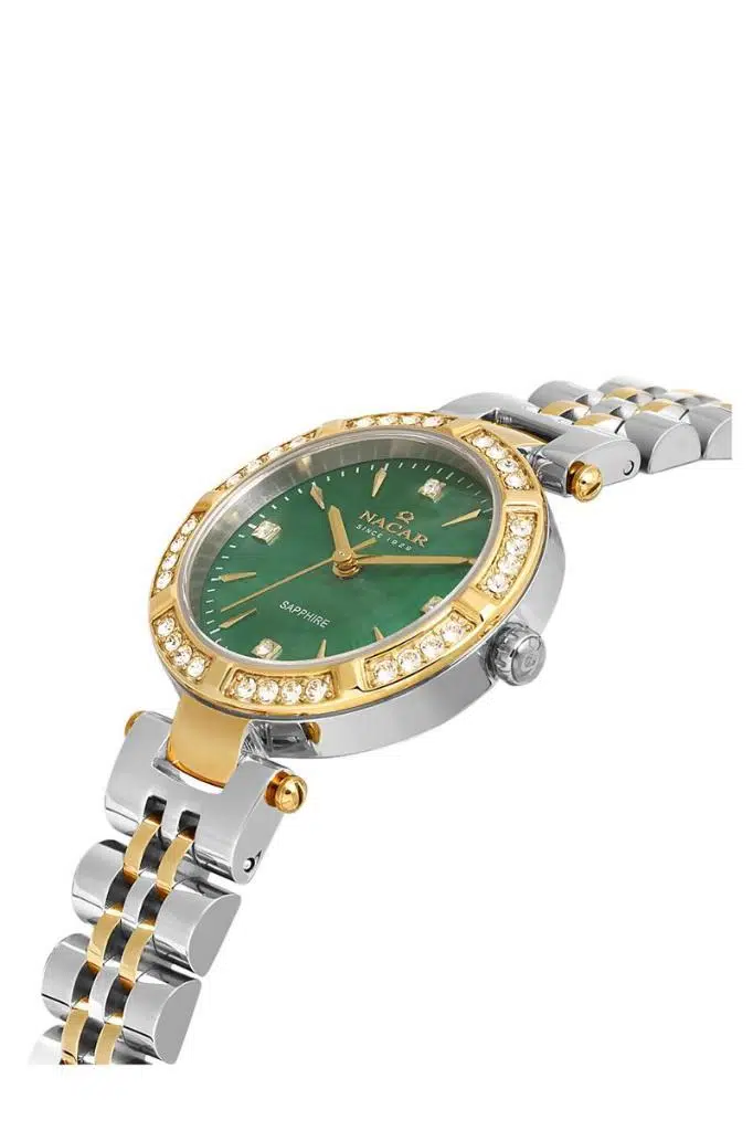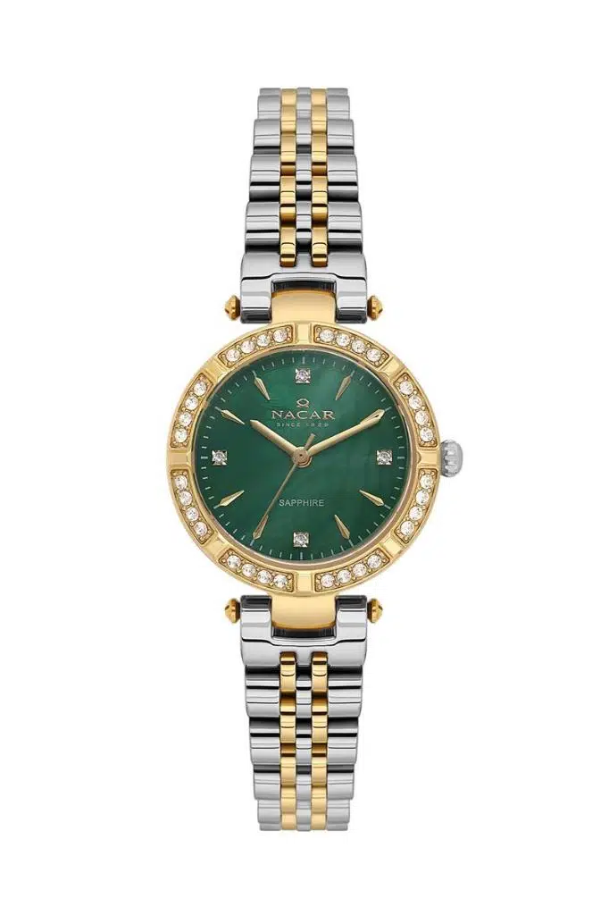 Nacar NC34-39B690-CNMS Minimal Taşlı Tasarım Safir Camlı 5 ATM Suya Dayanıklı Çelik Metalik-Altın Renk Kadın Kol Saati