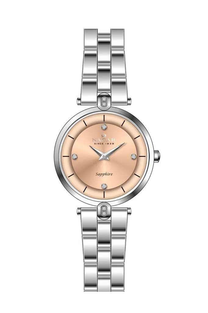 Nacar NC34-39C714-ARMS Safir Camlı Minimal Taşlı Tasarım 5 ATM Suya Dayanıklı Çelik Kordon Metalik Renk Kadın Kol Saati