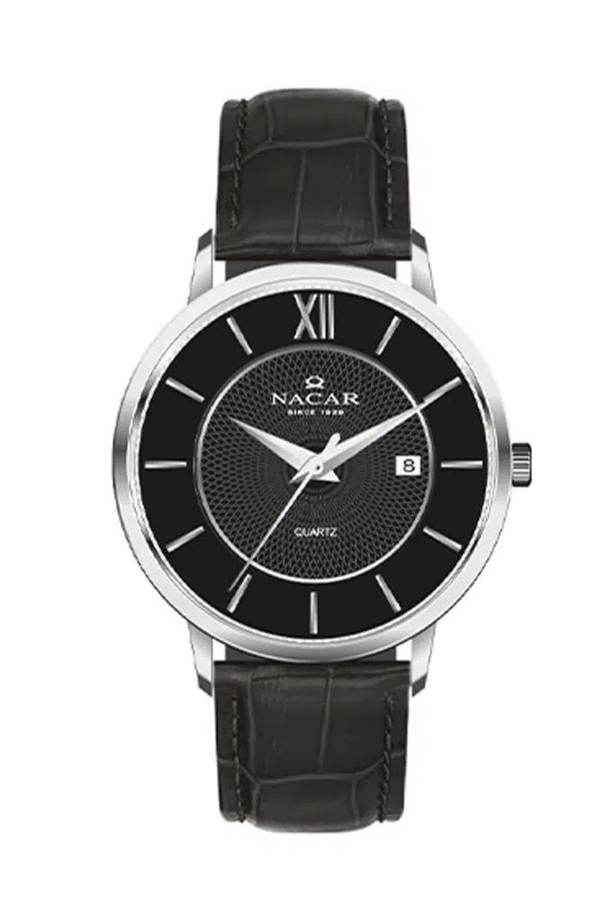 Nacar NC35-290038-ABL1 Erkek Kristal Cam Deri Kordon Siyah Kol Saati