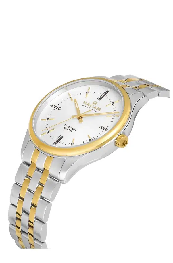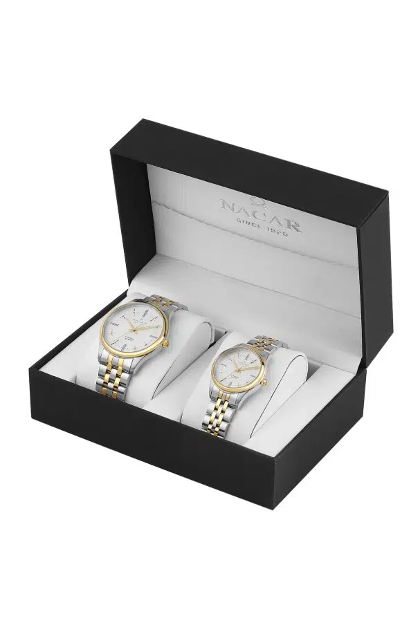 Nacar NC35-592025-CSM Çelik Kasa Çelik Kordon 5 Atm Su Geçirmezlik Metalik-Altın Renk Sevgili/Çift Saati