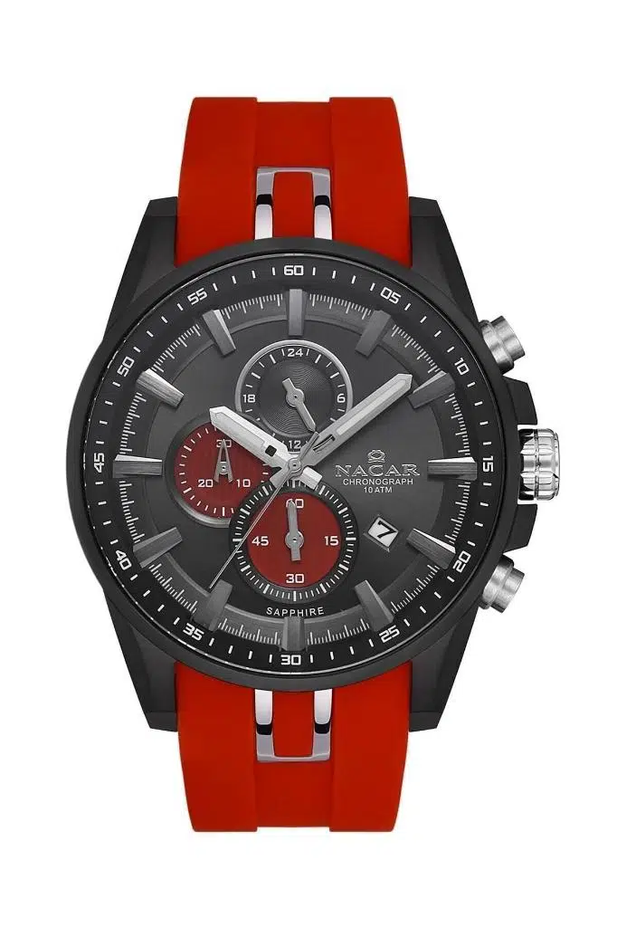 Nacar NC38-296338-BBBS4 Tüm Fonksiyonları Aktif 10 ATM Su Geçirmez Safir Cam Kırmızı Renk Erkek Kol Saati