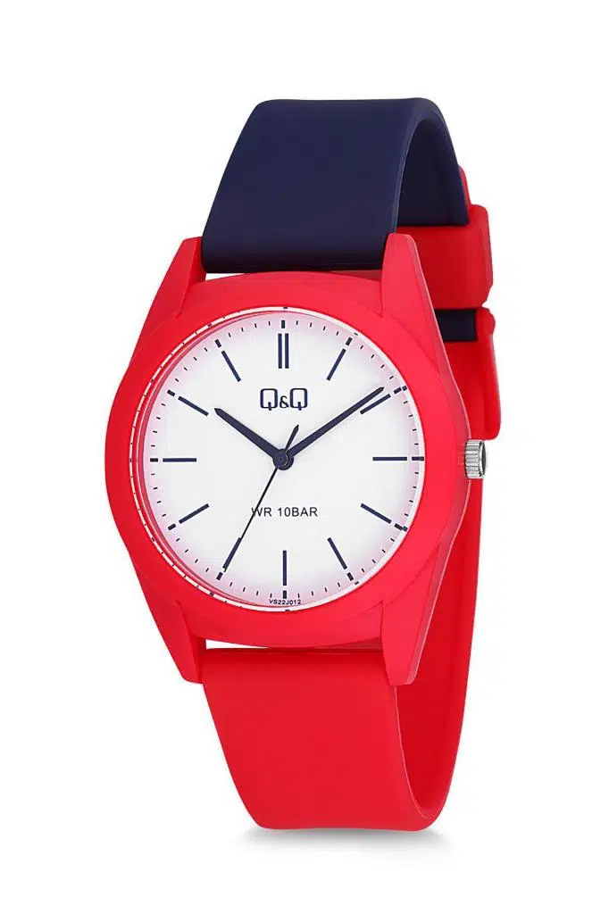 QQ VS22J012Y Plastik Kordon 10 Bar Su Geçirmezlik Lacivert-Kırmızı Unisex Kol Saati