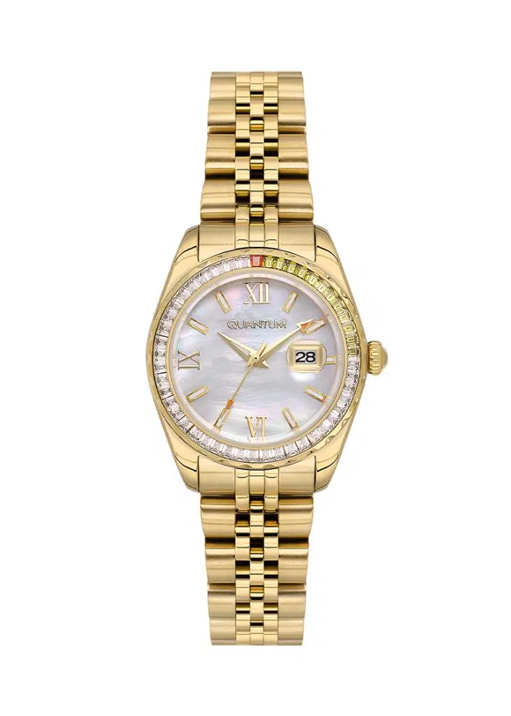 Quantum IML1138.120 Taşlı Tasarım Sedef Kadran Çelik Kordon 5 ATM Suya Dayanıklı Altın Renk Kadın Kol Saati