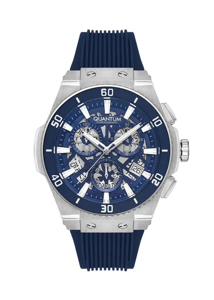 Quantum PWG1129.399 Tüm Fonksiyonları Aktif Silikon Kordon Çelik Kasa Kronograf 10 ATM Suya Dayanıklı Lacivert Renk Erkek Kol Saati