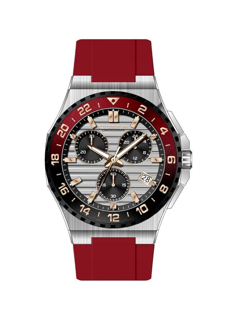 Quantum PWG1147.358 Kronograf Tüm Fonksiyonları Aktif 10 ATM Suya Dayanıklı Silikon Kordonlu Kırmızı Erkek Kol Saati