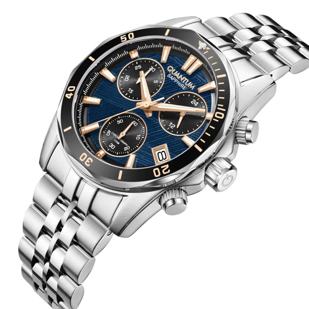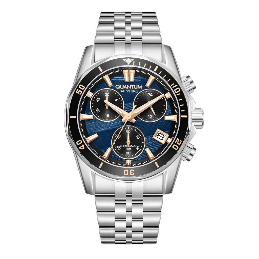 Quantum PWG1234.590 Kronograf Tüm Fonksiyonlar Aktif Safir Camlı Çelik Kordon Çelik Kasa 10 ATM Suya Dayanıklı Metalik Renk Erkek Kol Saati