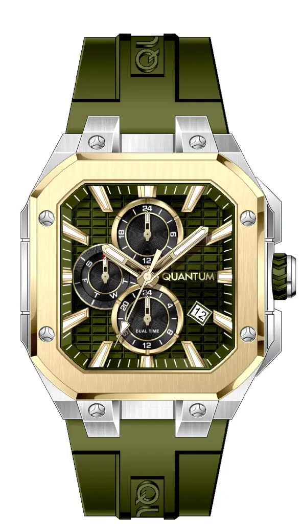 Quantum PWG1235.275 Kare Kadranlı Silikon Kordon Çelik Kasa 5 ATM Suya Dayanıklı Yeşil Renk Erkek Kol Saati