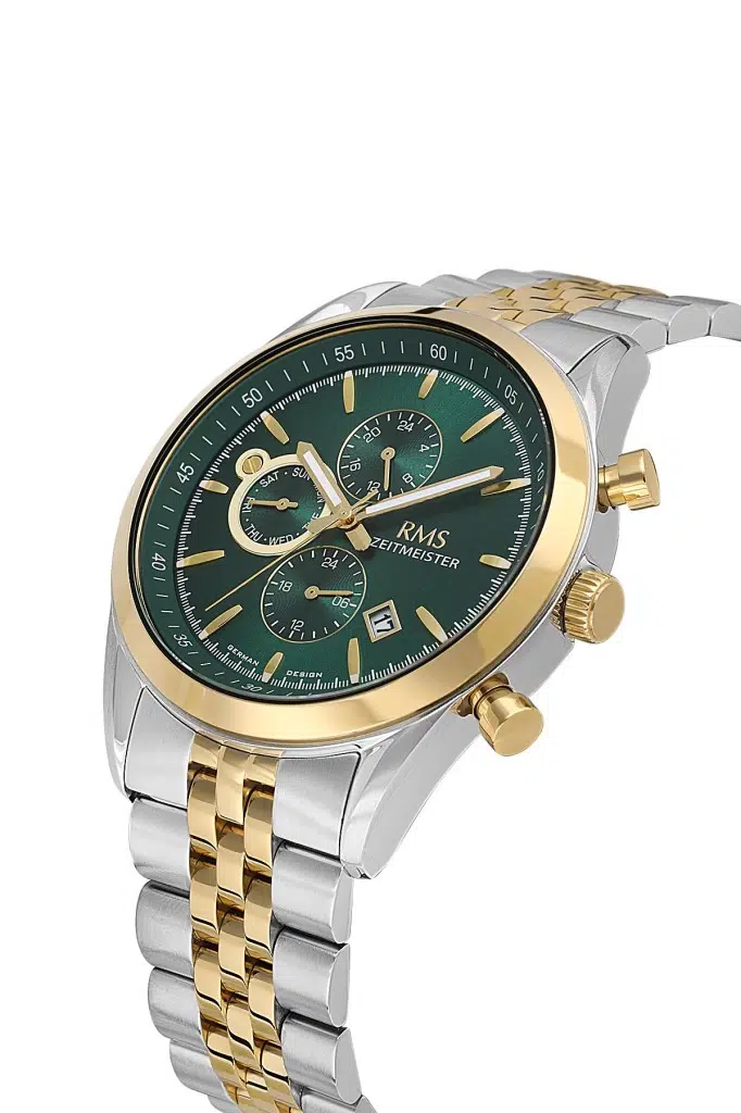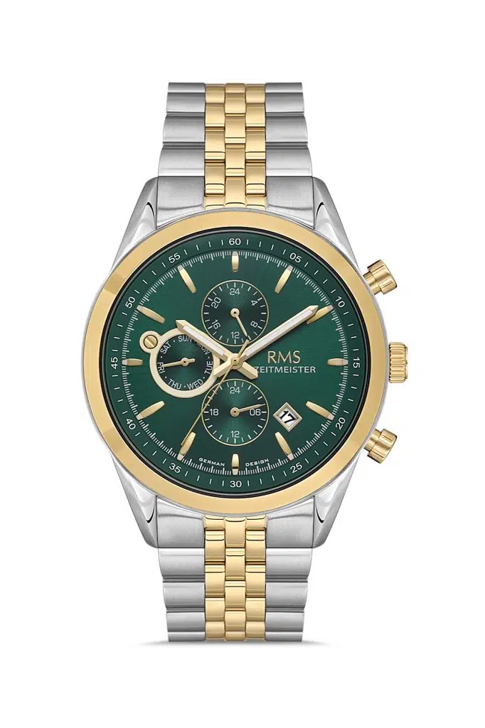 Rms Zeitmeister RMS.1.AG1163.13 Tüm Fonksiyonlar Aktif Kristal Camlı Çelik Kordon Çelik Kasa 5 ATM Suya Dayanıklı Metalik-Altın Renk Erkek Kol Saati