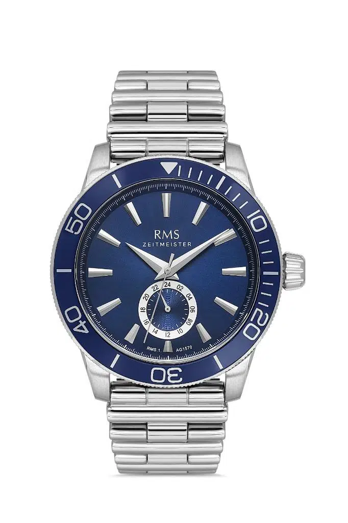 Rms Zeitmeister RMS.1.AG1570.02 Kristal Camlı Döner Bezelli 5 ATM Suya Dayanıklı Çelik Kordon Metalik Renk Erkek Kol Saati
