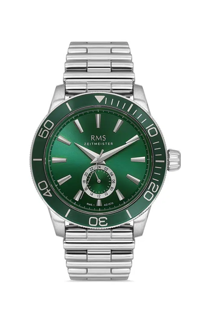 Rms Zeitmeister RMS.1.AG1570.03 Kristal Camlı Çelik Kordon Çelik Kasa 5 ATM Suya Dayanıklı Metalik Renk Erkek Kol Saati