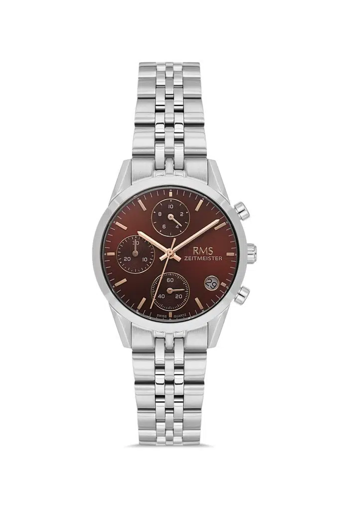Rms Zeitmeister RMS.1.AG1594.06 Fonksiyonlar Aktif Çelik Kasa Çelik Kordon 5 Atm Suya Dayanıklı Metalik Renk Kadın Kol Saati