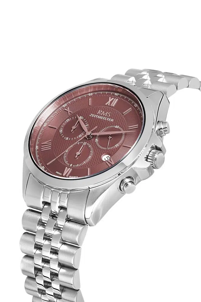 Rms Zeitmeister RMS.1.AG1598.06 Tüm Fonksiyonlar Aktif Safir Camlı Çelik Kordon Çelik Kasa 5 ATM Suya Dayanıklı Metalik Renk Erkek Kol Saati