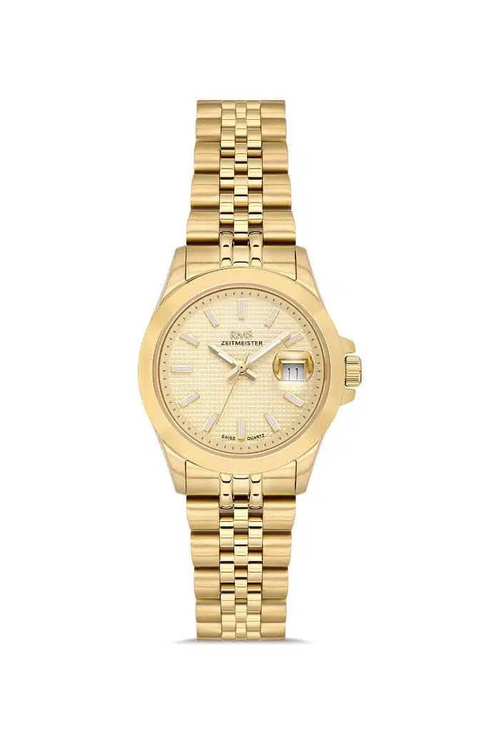 RMS Zeitmeister RMS.1.AG1601.11 İsviçre Mekanizmalı Çizilmez Safir Cama Sahip 5 ATM Suya Dayanıklı Çelik Kordonlu Altın Renk Kadın Kol Saati