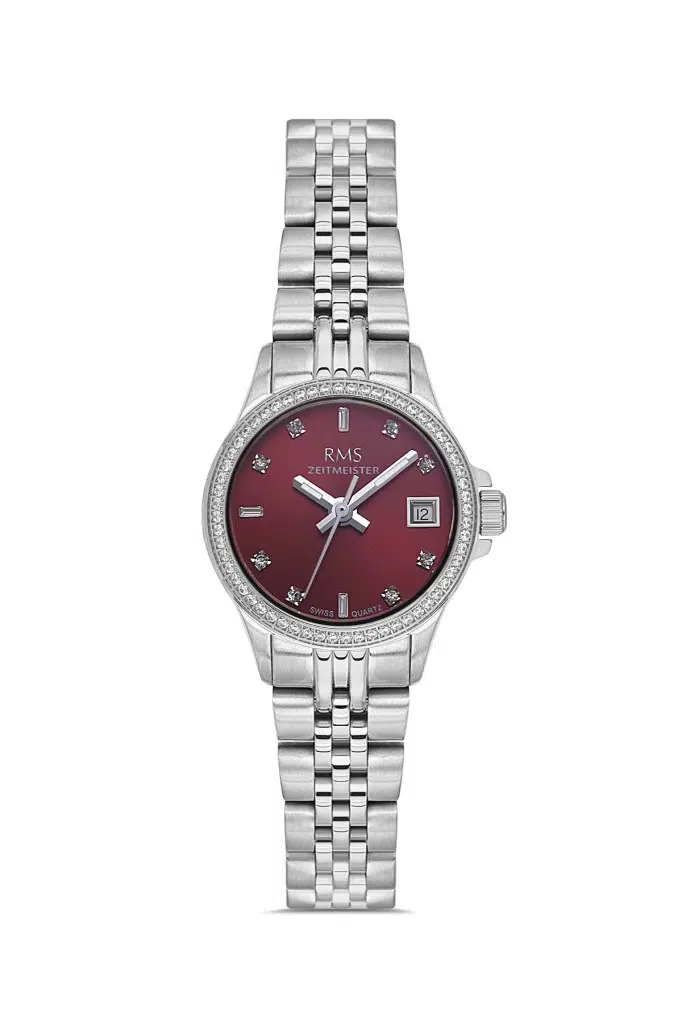 Rms Zeitmeister RMS.1.AG1604.04 Taşlı Tasarım Safir Cam Çelik Kordon Çelik Kasa 5 ATM Suya Dayanıklı Metalik Renk Kadın Kol Saati