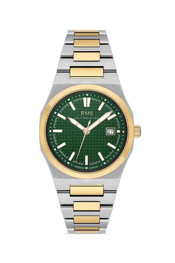 Rms Zeitmeister RMS.1.AG1611.08-C Kristal Cam Takvimli 5 Atm Suya Dayanıklı Metalik-Altın Renk Erkek Kol Saati
