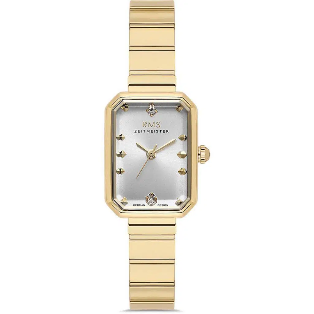 RMS Zeitmeister RMS.1.AG2050.04 Taşlı Tasarım Kristal Camlı Dikdörtgen Kadran Çelik Kordon Çelik Kasa 5 ATM Suya Dayanıklı Altın Renk Kadın Kol Saati