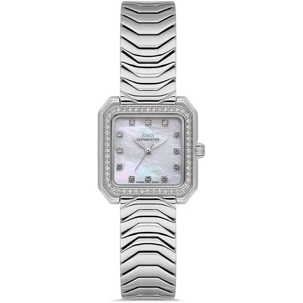 RMS Zeitmeister RMS.1.AG2051.01 Taşlı Tasarım Kristal Camlı Kare Kadran Çelik Kordon Çelik Kasa 5 ATM Suya Dayanıklı Metalik Renk Kadın Kol Saati