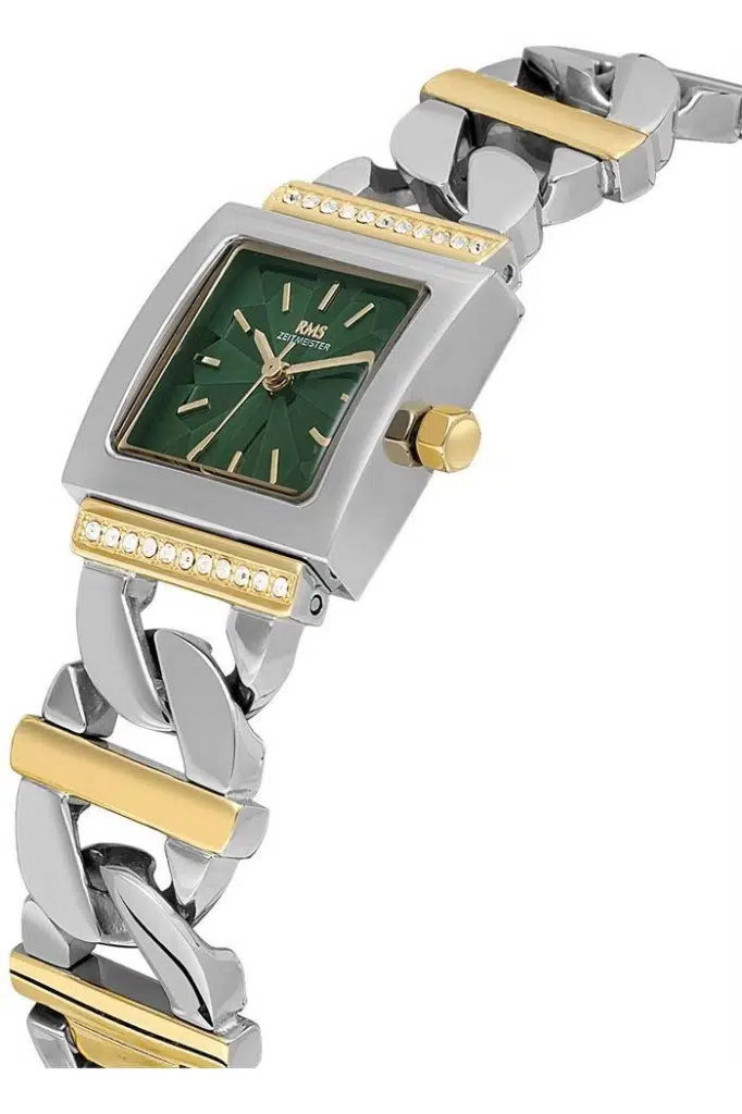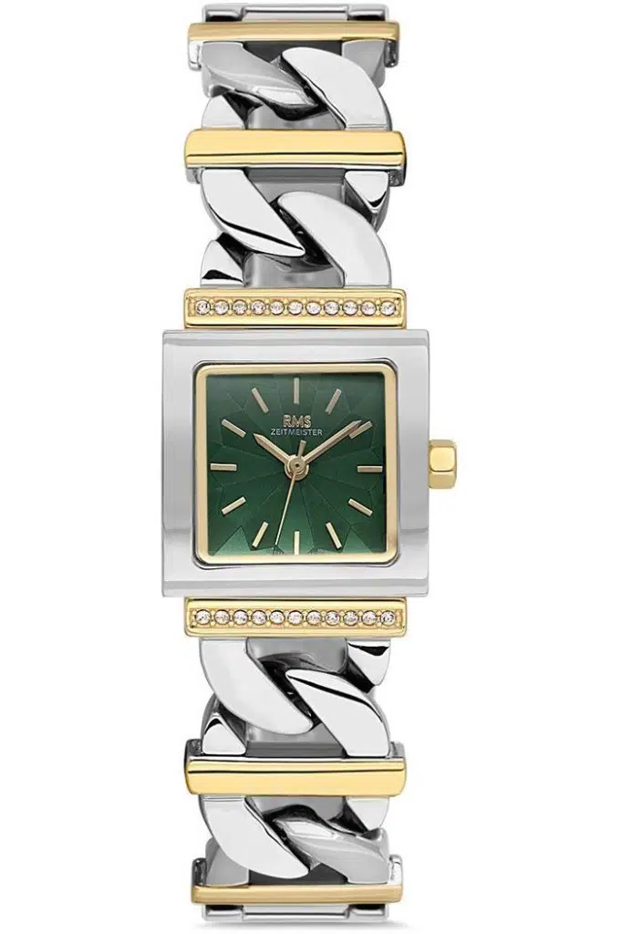 RMS Zeitmeister RMS.1.AG2055.06 Taşlı Tasarım Kare Kadranlı Kristal Camlı Çelik Kordon Çelik Kasa 5 ATM Suya Dayanıklı Metalik-Altın Renk Kadın Kol Saati