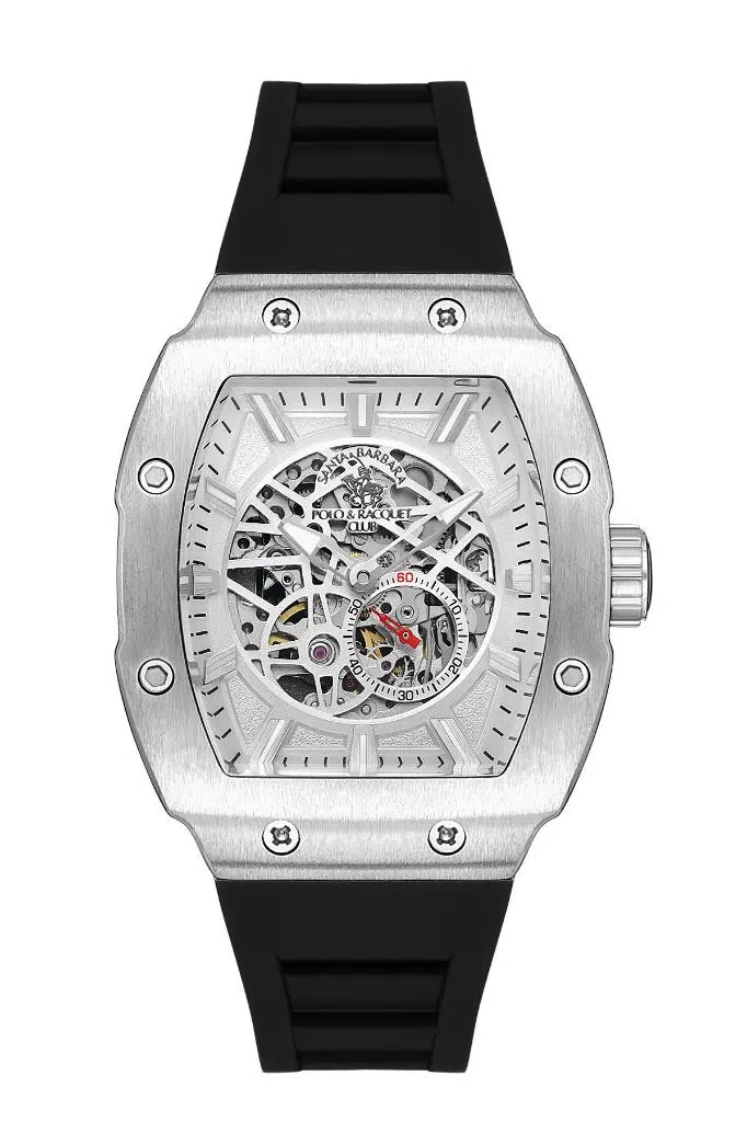 Santa Barbara Polo SB.1.10549.1 Otomatik Mekanizmaya Sahip Silikon Kordon Çelik Kasa 5 ATM Su Geçirmezlik Değerine Sahip Siyah Erkek Kol Saati