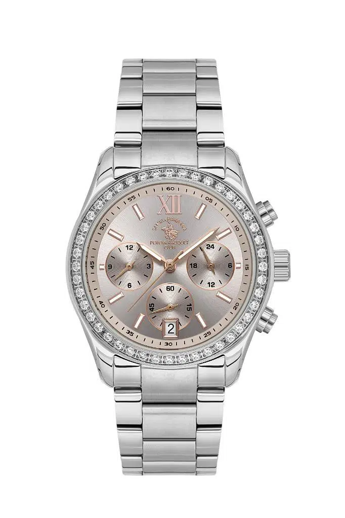 Santa Barbara Polo Racquet Club SB.1.10579-2 Taşlı Tasarım Tüm Fonksiyonları Aktif Suya Dayanıklı Metalik Renk Kadın Kol Saati