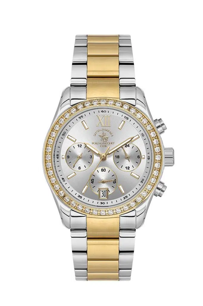 Santa Barbara Polo Racquet Club SB.1.10579-3 Taşlı Tasarım Tüm Fonksiyonları Aktif Suya Dayanıklı Altın-Metalik Renk Kadın Kol Saati
