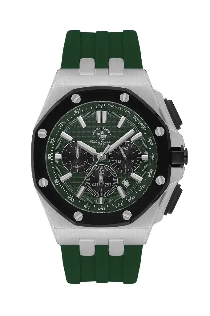 Santa Barbara Polo Racquet Club SB.1.10601-3 Silikon Kordonlu Tüm Fonksiyonları Aktif Suya Dayanıklı Yeşil Erkek Kol Saati