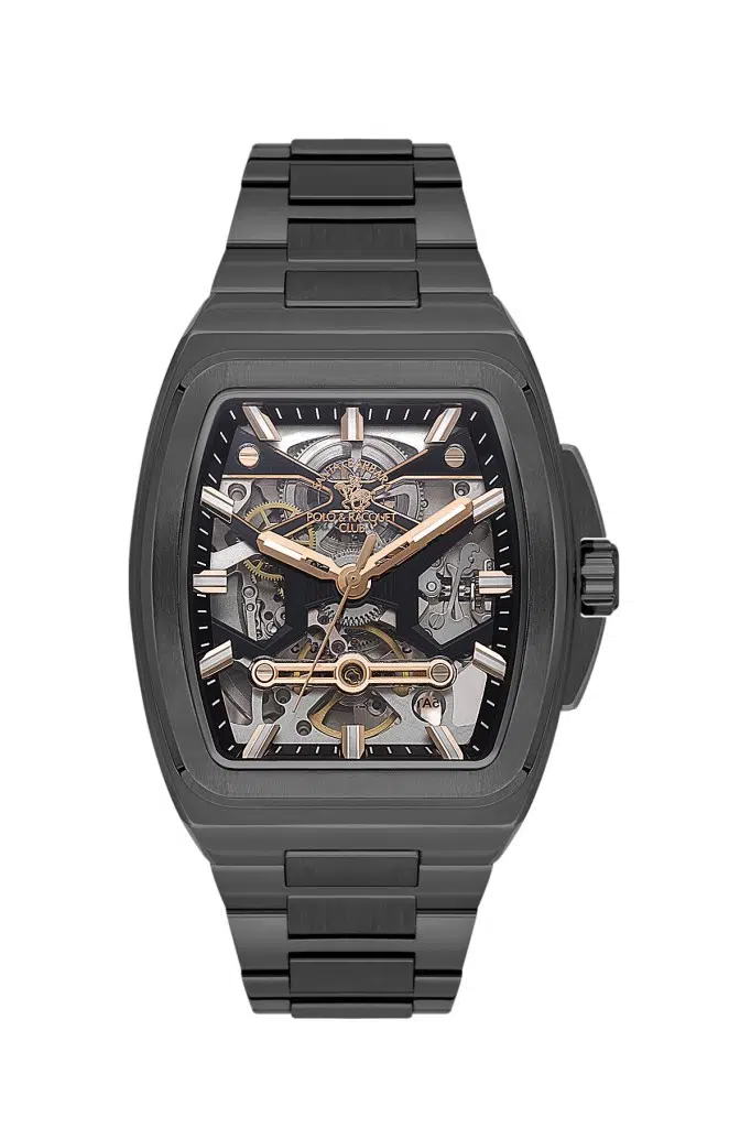 Santa Barbara Polo Racquet Club SB.1.10630-4 Otomatik Mekanizmalı Kare Kadranlı Çelik Kordon Çelik Kasa 5 ATM Suya Dayanıklı Siyah Renk Erkek Kol Saati