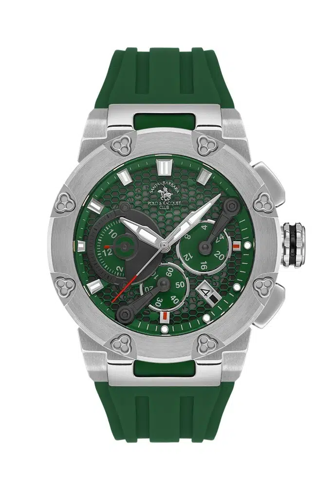 Santa Barbara Polo Racquet Club SB.5.10001-2 Silikon Kordon Çelik Kasa 10 ATM Suya Dayanıklı Yeşil Renk Erkek Kol Saati