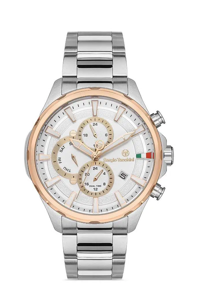 Sergio Tacchini ST.1.10308.4 Tüm Fonksiyonları Aktif 5 ATM Su Geçirmezlik Değerine Sahip Çelik Kordon Çelik Kasa Metalik Renk Erkek Kol Saati