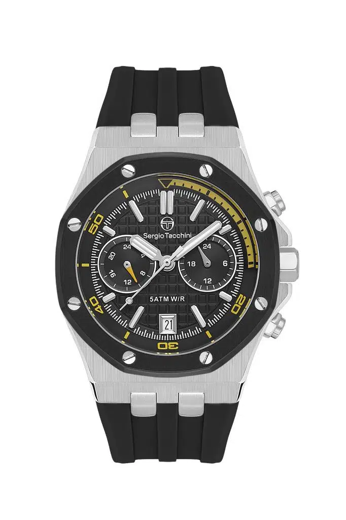 Sergio Tacchini ST.1.10447-1 Silikon kordon Fonksiyonlar Aktif Suya Dayanıklı Siyah Renk Erkek Kol Saati