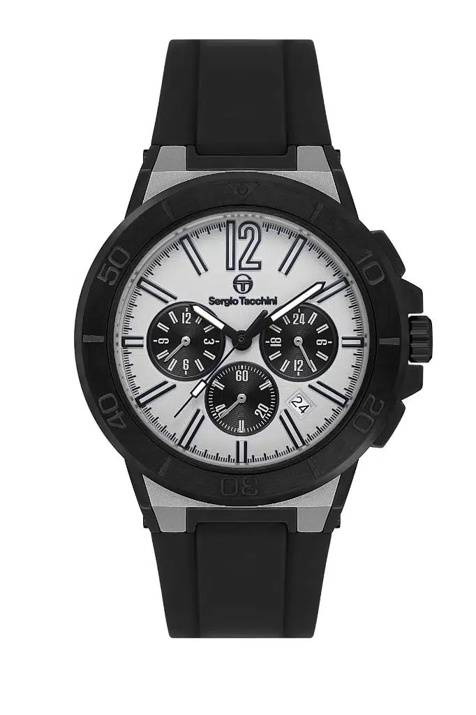 Sergio Tacchini ST.1.10458-1 Silikon kordon Fonksiyonlar Aktif Suya Dayanıklı Siyah Renk Erkek Kol Saati