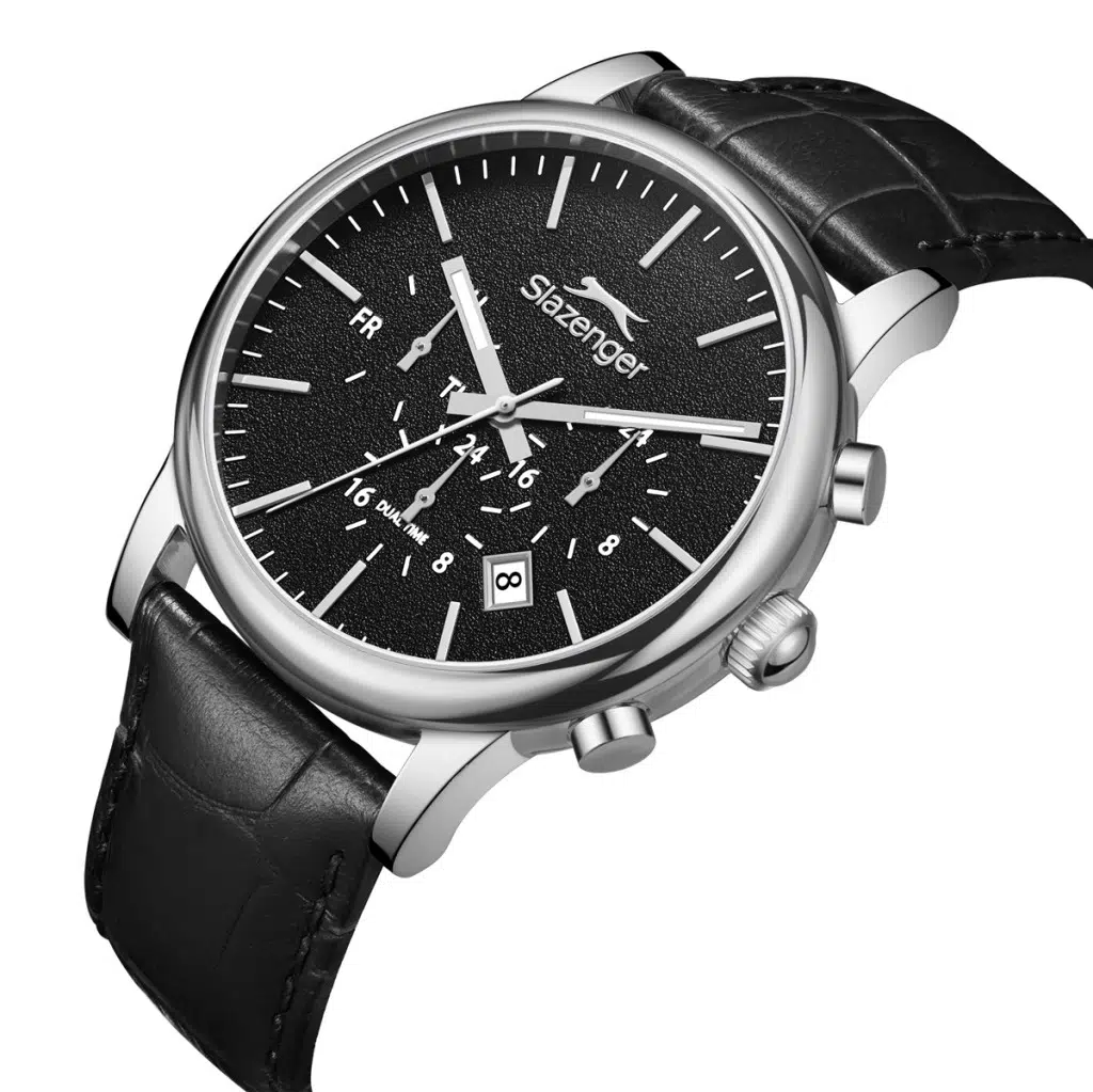 Slazenger SL.09.2461.2.02 Deri Kordon Çelik Kasa 10 ATM Suya Dayanıklı Siyah Renk Erkek Kol Saati
