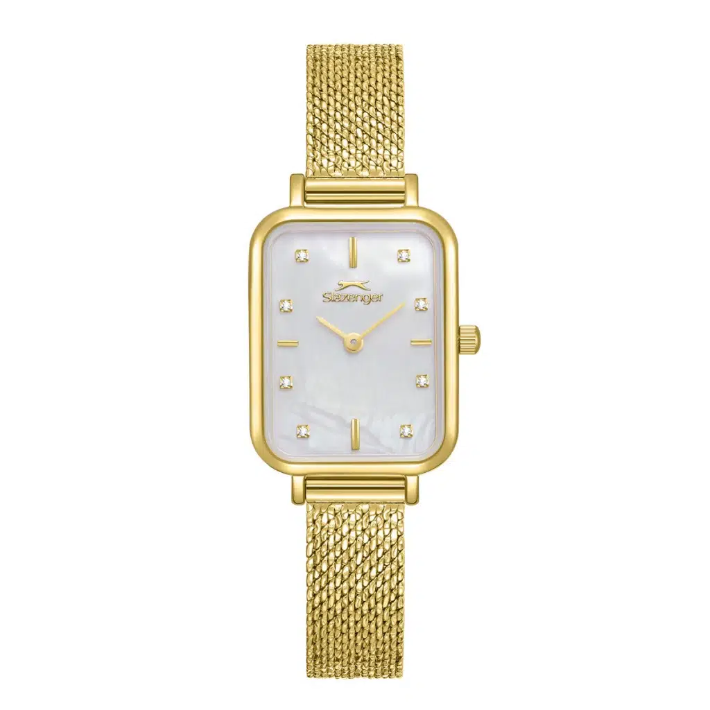 Slazenger SL.09.2550.3.03 Dikdörtgen Kadran Hasır Kordon 5 Atm Suya Dayanıklı Altın Renk Kadın Kol Saati
